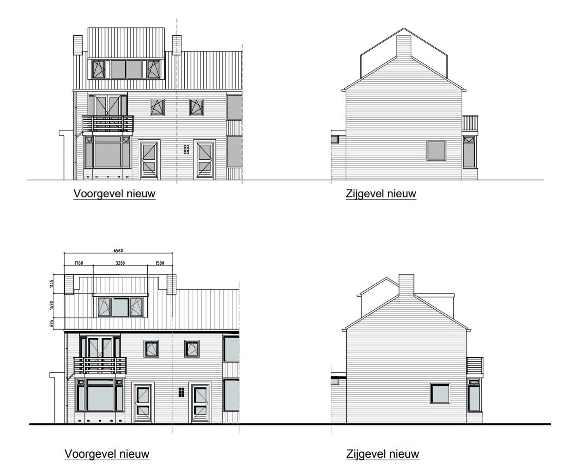 Ontwerpen voor Dorpsduinen 15. Boven het eerste ontwerp en onder het gewijzigde ontwerp. Bron: Dekker Bouwbegeleiding