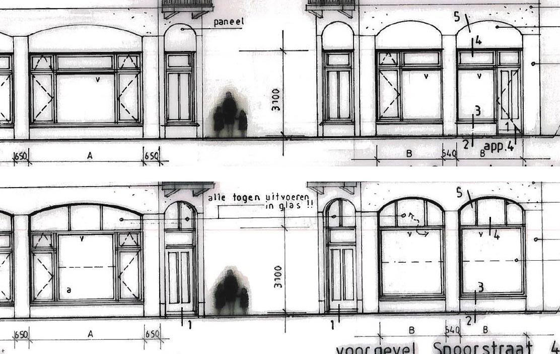 Eerste versie en aangepaste versie ontwerp Spoorstraat 47. Beeld: architect
