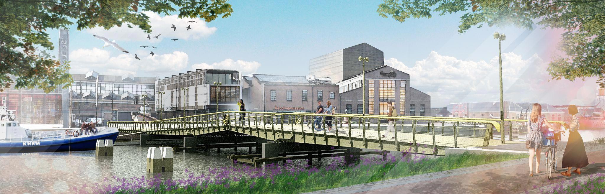 Deze voetgangersbrug naar Willemsoord wordt uiteindelijk niet gerealiseerd. Beeld West8