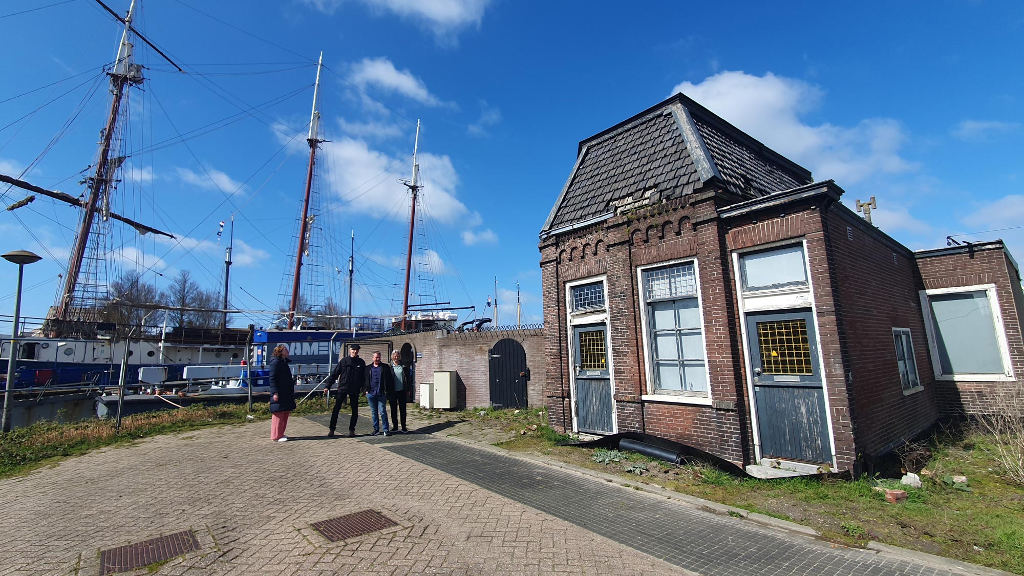 De commissie op werkbezoek bij het voormalige brugwachtershuisje Ankerpark. Beeld: GAO Den Helder