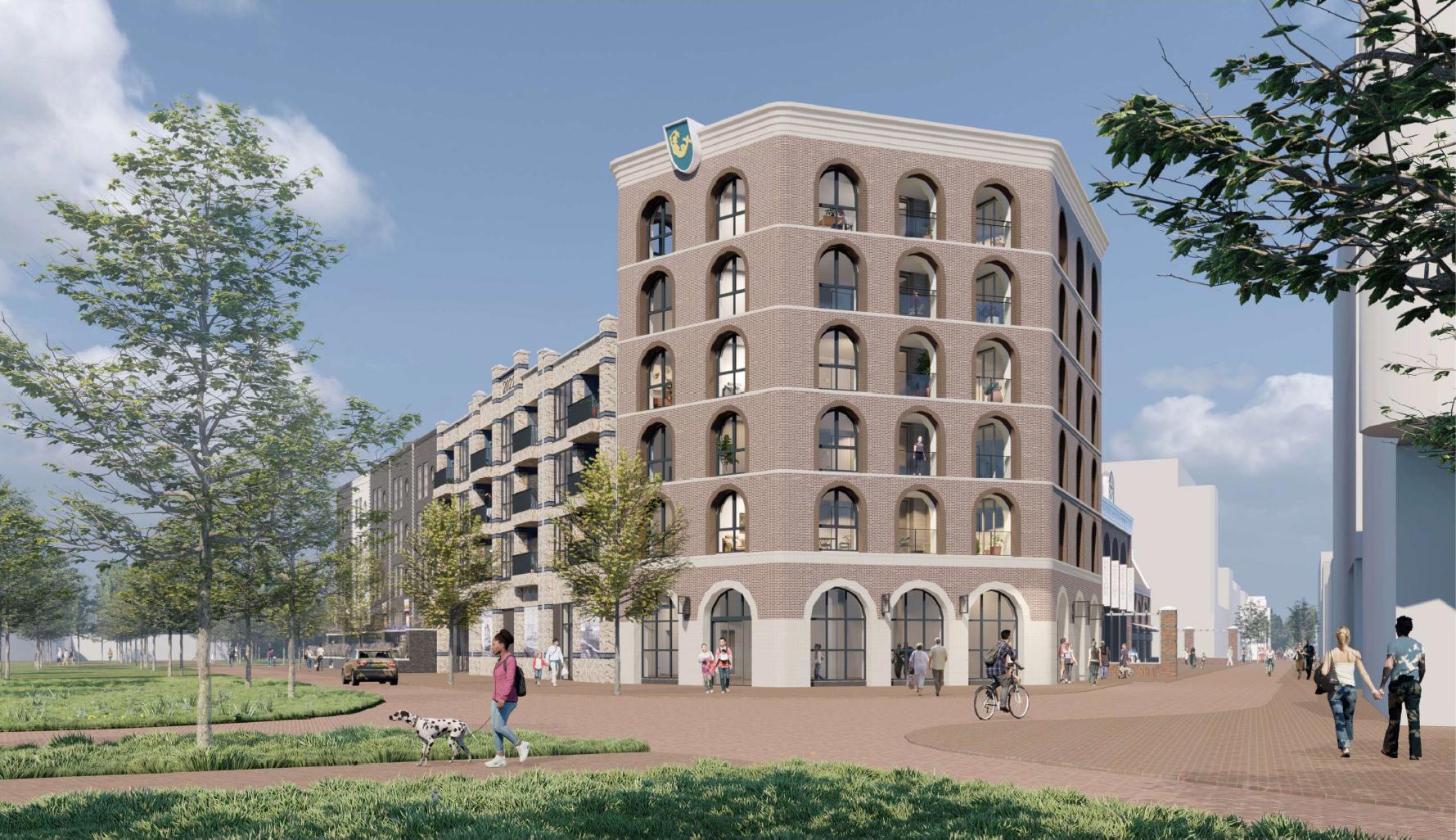 Halter Bellevue gezien vanaf het Bernhardplein. Beeld: Attika Architekten