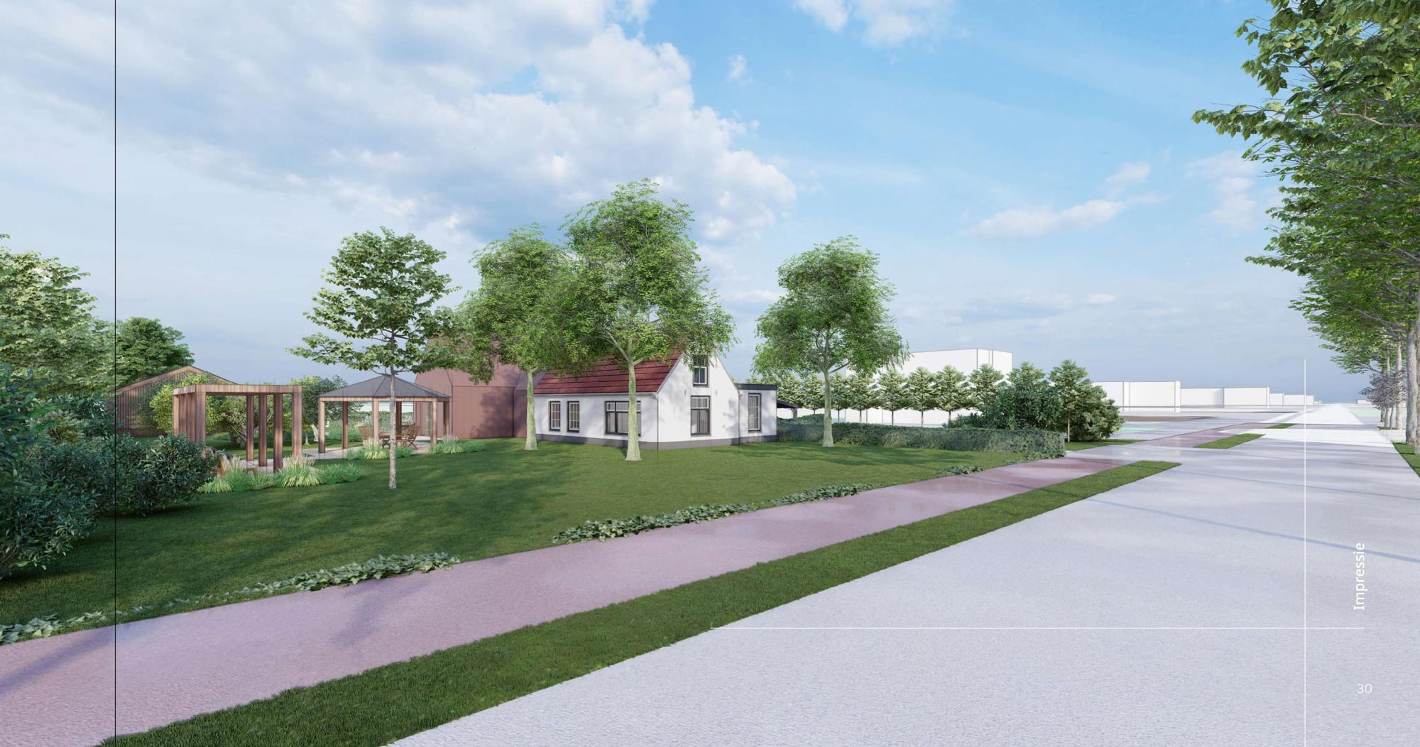 Nieuwe situatie van ‘Schuilboerderij’ met opstallen in het voorlopige ontwerp, ENZO architecten N interieur