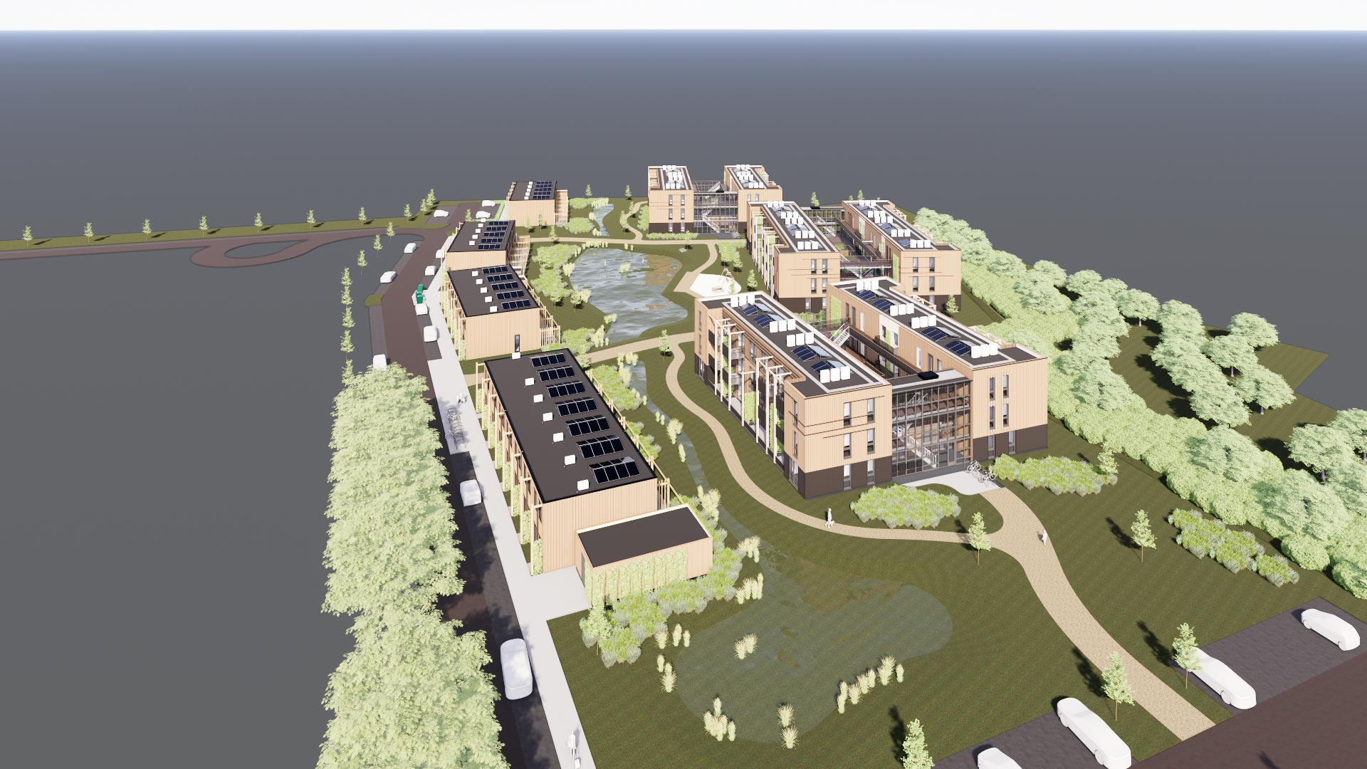 Modulaire woningen vogelvlucht, LA architecten en ingenieurs