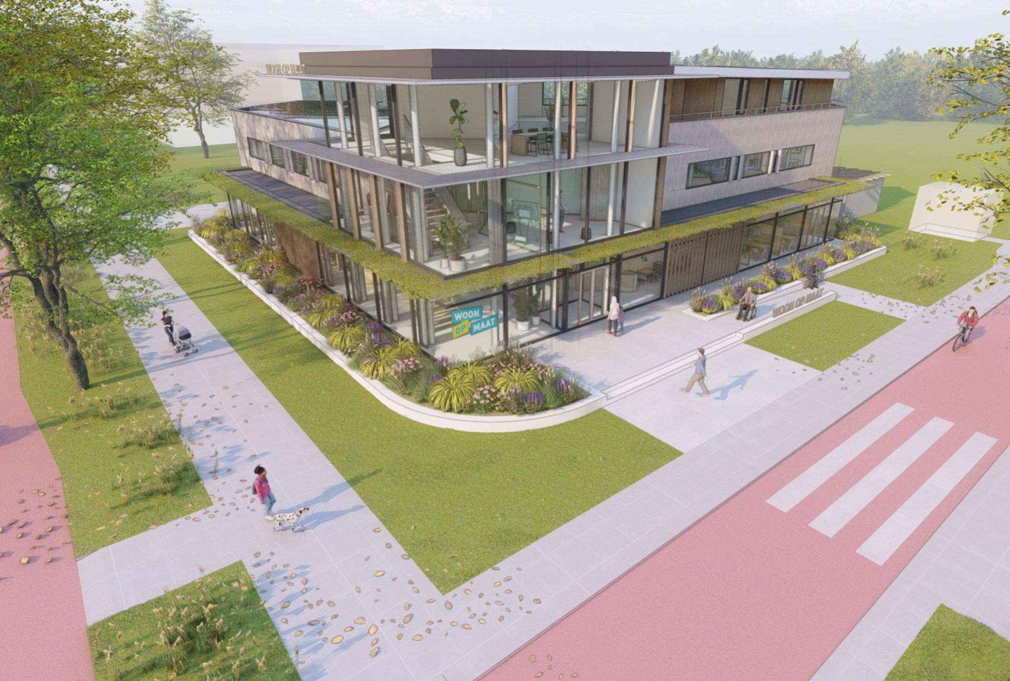Het kantoor van de woningcorporatie is prominent zichtbaar bij de kruising. Het is heel positief dat het gebouw verduurzaamd wordt. Stedenbouwkundig is het een belangrijke verbetering dat er meer openheid op de hoek komt. Tegelijk wordt het kantoor veel compacter gemaakt en verdwijnt de lange, meer gesloten vleugel, wat ruimte schept om daar te kunnen verdichten met bijvoorbeeld woningbouw.