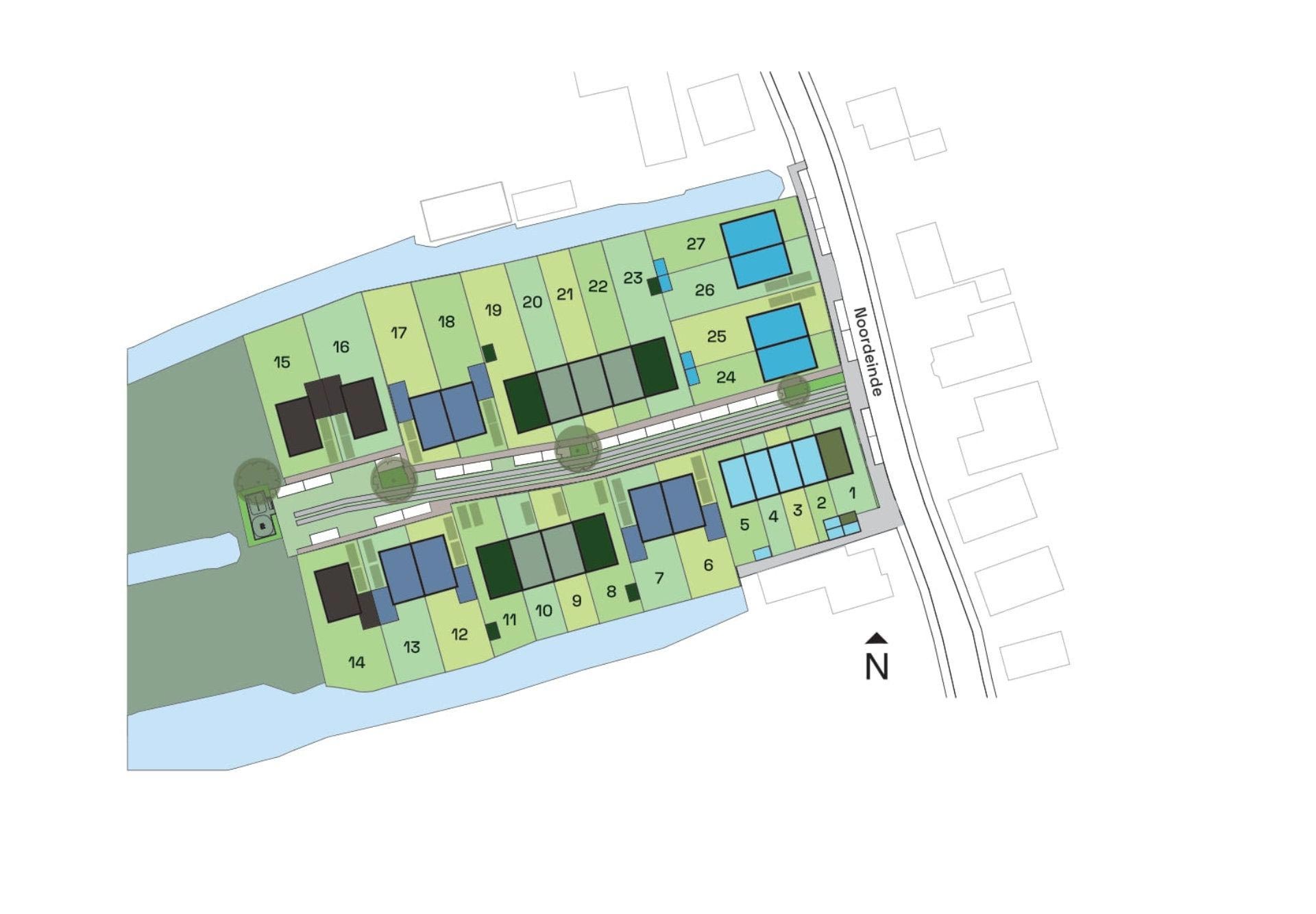 Een aantal jaar geleden is het stedenbouwkundige plan voor het Noordeinde 40, bestaande uit 17 woningen in vier typen (twee-onder-één-kap, vrijstaande en rijwoningen), aan de intaketafel besproken en toen als wenselijk en voldoende kansrijk beschouwd. Een deel van woningen is georiënteerd op een centrale keerlus die wordt ontsloten via de Jollenmakersweg. De woningen bestaan uit twee bouwlagen met een zadeldak van donkere pannen. De gevels zijn opgetrokken in metselwerk; een roodbruine plint en wit gepleisterde verdieping en/of topgevel.