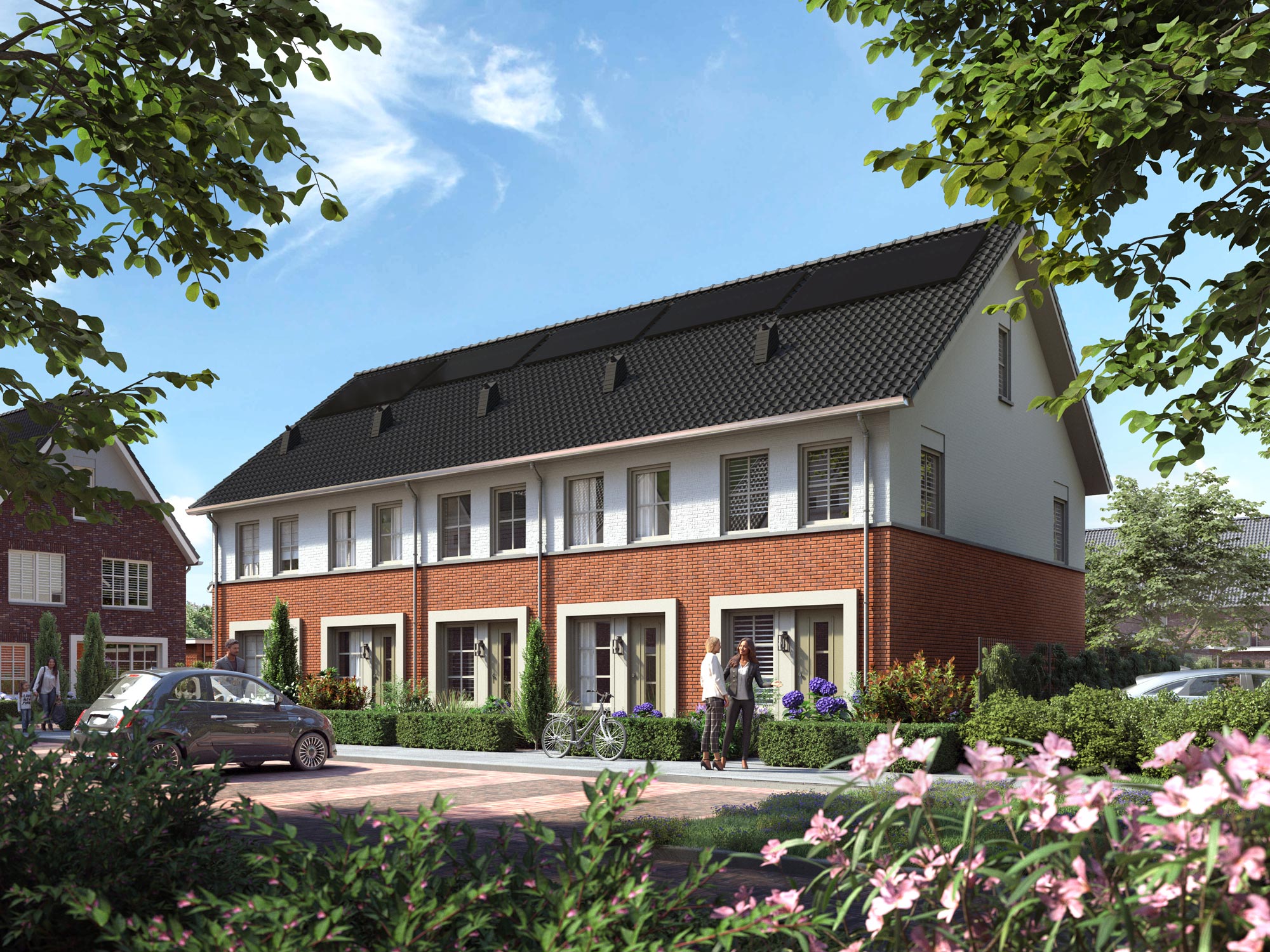 Bij de uitwerking lag de nadruk op het individuele karakter en de schuurtypologie van de woningen op het erf, evenals de vormgeving van de WKO’s en dakkapellen.