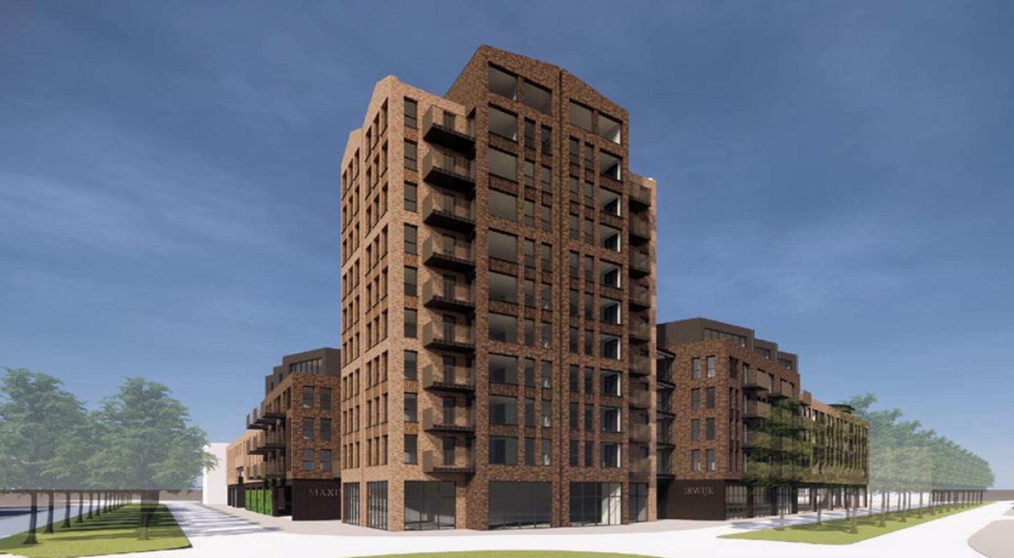 Impressie van het woongebouw, eerste ontwerp. HevoFame