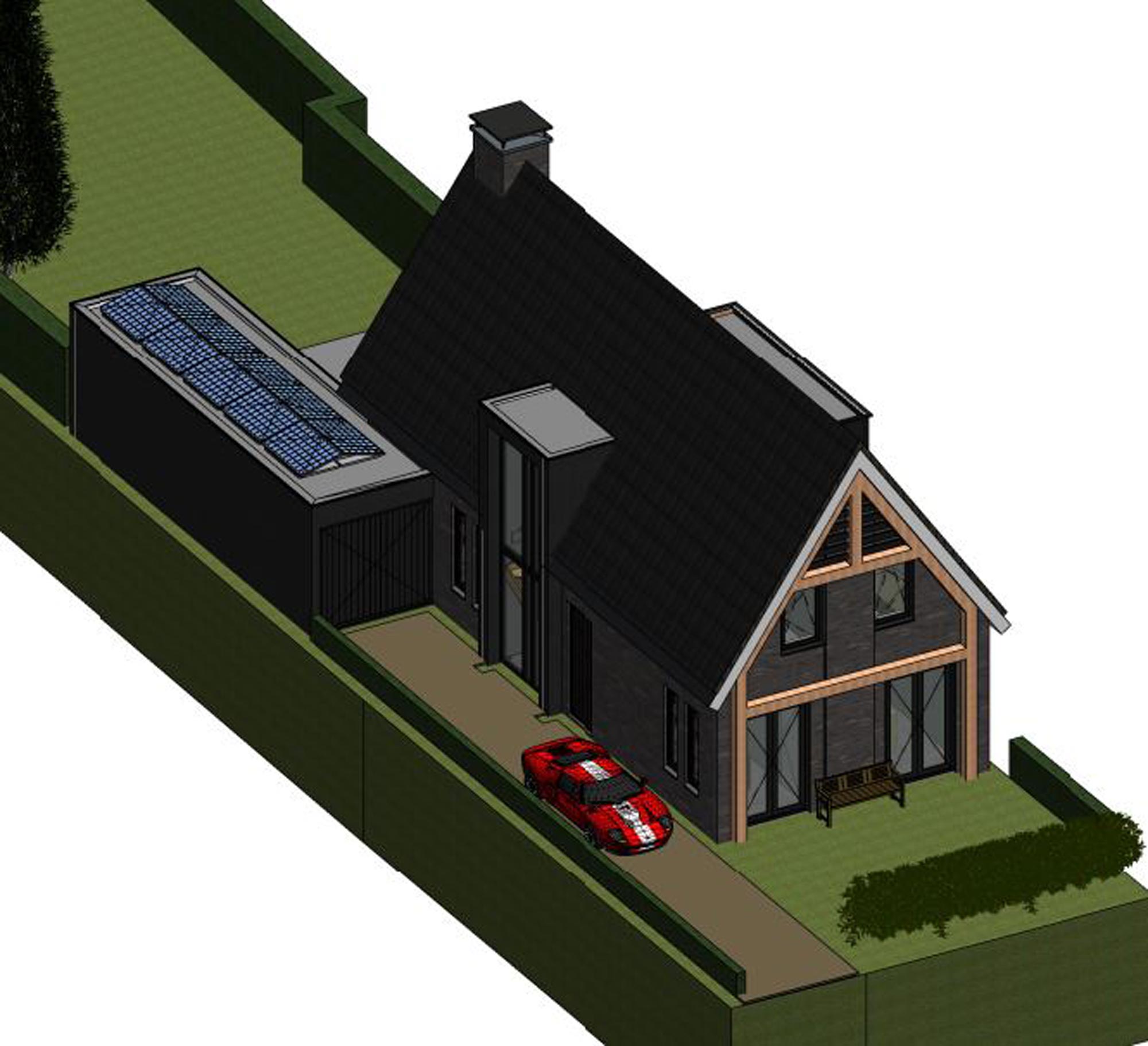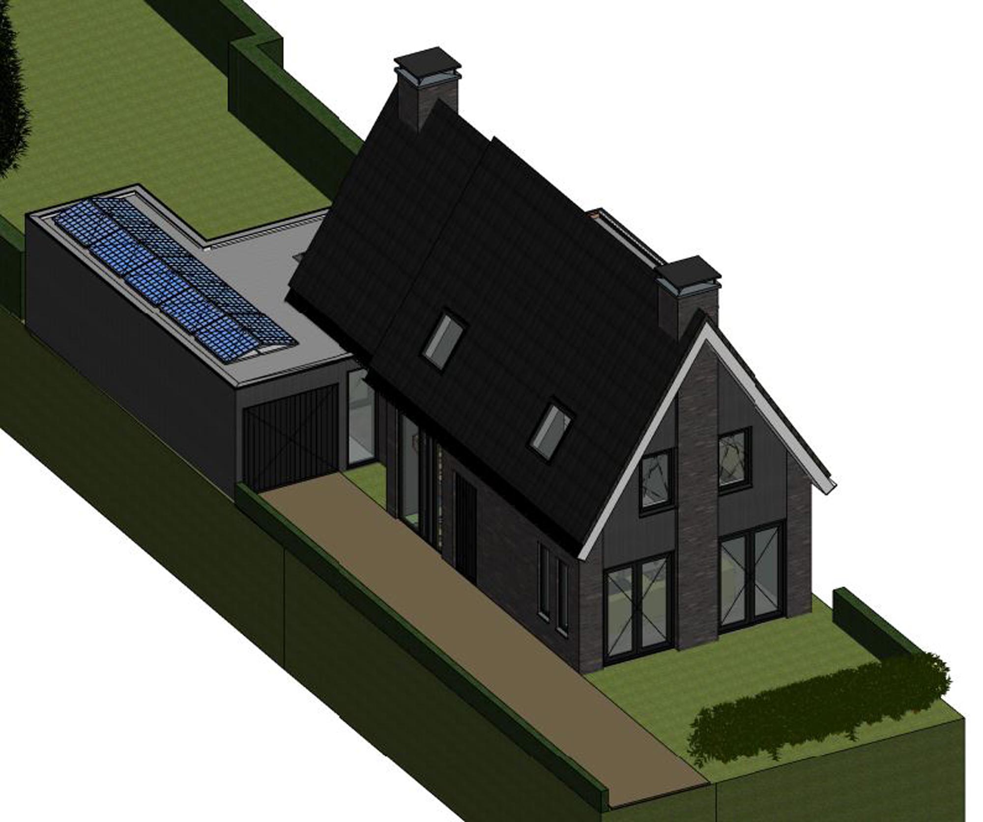 Impressie van het deviniteiev ontwerp met een dakrand die de volumes koppeld en meer ruimte voor vergroening. ntwerpburo Piet van Es BV